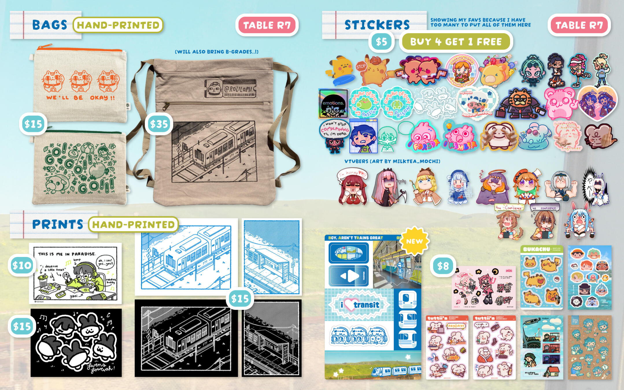 i’m an artist who specializes in merch + screenprinting - i print all my apparel + bags by myself!